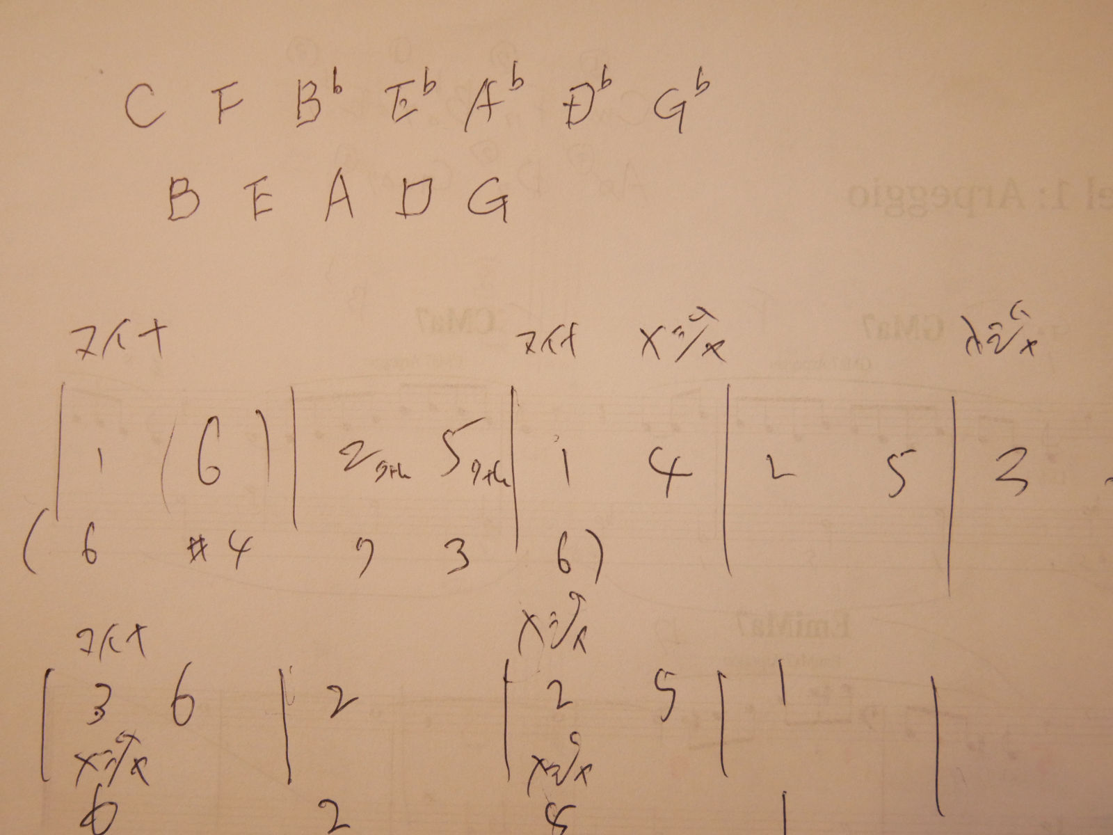 例えば最初の4小節の Fm7 Dm7(-5) G7(b9) C7 。これを何となく弾いてるとあまり効果的な練習にはならない。
